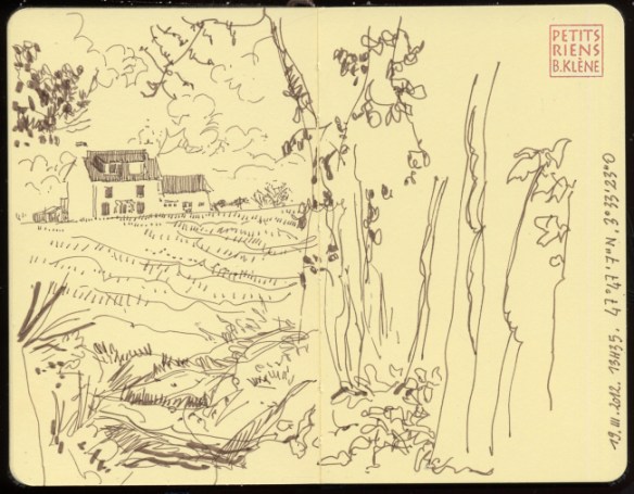 Autrement dit : Ty Milin, au bout du chemin qui mène à la maison de Keranquernat, vue du petit chemin vers Saint Maudet…. Maintenant, vous saurez tout de mes chemins secrets ….