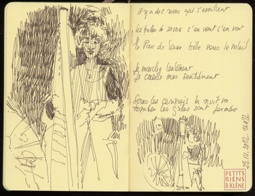 Ce contenu a été publié dans 2012. Escale au Pôle Sud, Chroniques croquées par benedicteklene, et marqué avec Bénédicte Klène, carnet de voyage, Centre culturel Chartres de Bretagne, chanson et harpe, Chartres de Bretagne, Chroniques croquées, Chronos, Cristine Mérienne, dessin contemporain, Filage au Pôle Sud, Journal de bord, les petits riens, Madame est dans le jardin, Pôle Sud, Résidence d'artiste, Résidence d'artiste au Pôle Sud, Reportage dessiné, Vanités. Mettez-le en favori avec son permalien.