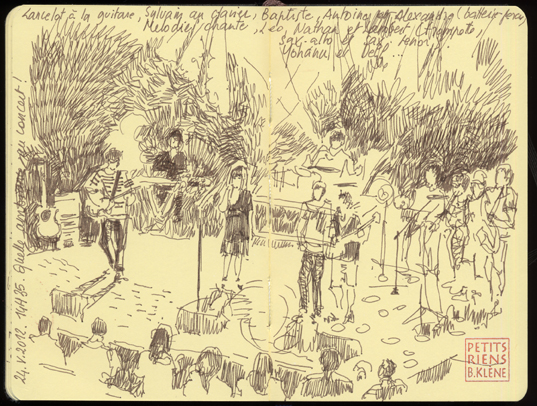 Ce contenu a été publié dans 2012. Escale au Pôle Sud, Chroniques croquées par benedicteklene, et marqué avec Bénédicte Klène, carnet de voyage, Centre culturel Chartres de Bretagne, Chartres de Bretagne, Chroniques croquées, Concert de musiques actuelles, dessin contemporain, Ecole de musique, Journal de bord, les petits riens, Pôle Sud, Résidence d'artiste, Résidence d'artiste au Pôle Sud, Reportage dessiné, Vanités. Mettez-le en favori avec son permalien.