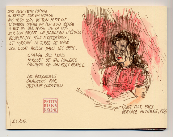2.II. 2013. Close your eyes… Publié le 07/02/2013 par benedicteklene Justine s’est installée sous le ciel du lit et nous chante la berceuse que le Maestro Roberto nous a fait choisir un peu plus tôt.