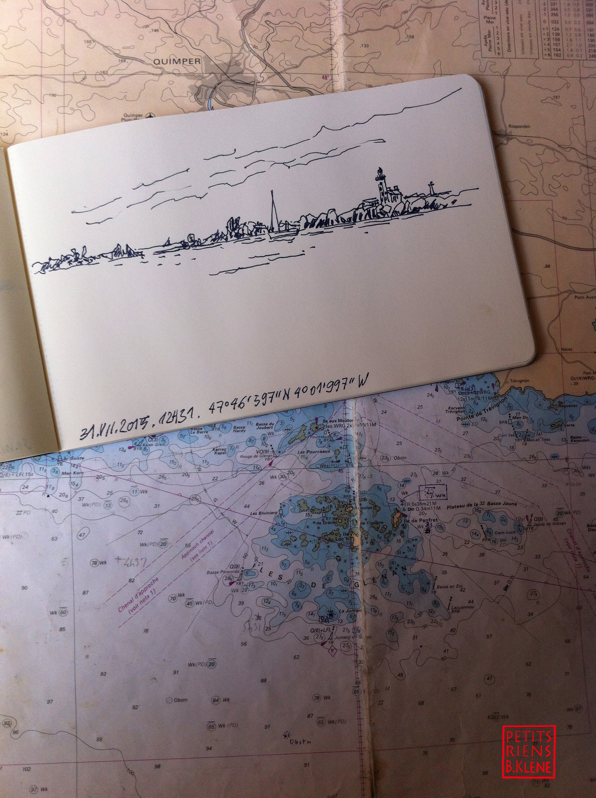31.VII. 2015. 12h31. 47°46′ 597 » N 4° 01′ 997 » W Publié le 31/07/2015 par benedicteklene Calme blanc devant l’île aux moutons et les Glénans…