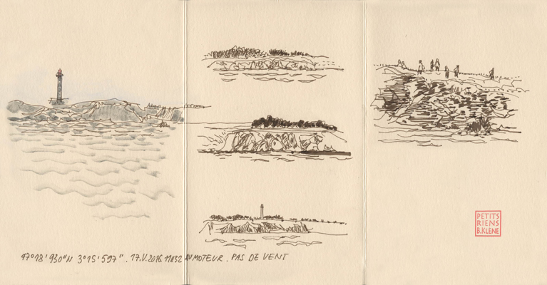 17. V. 2016. 11H52. >47° 18′ 930 »N 3° 15′ 597″ »W Publié le 07/06/2016 par benedicteklene Toujours pas de vent pour longer la côte sauvage de Belle Île…