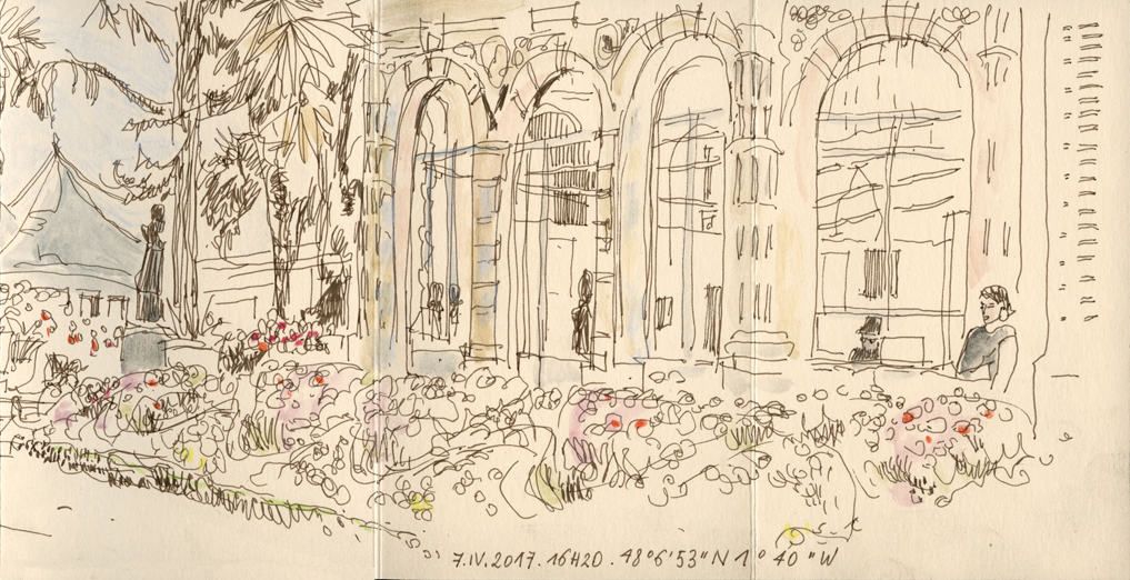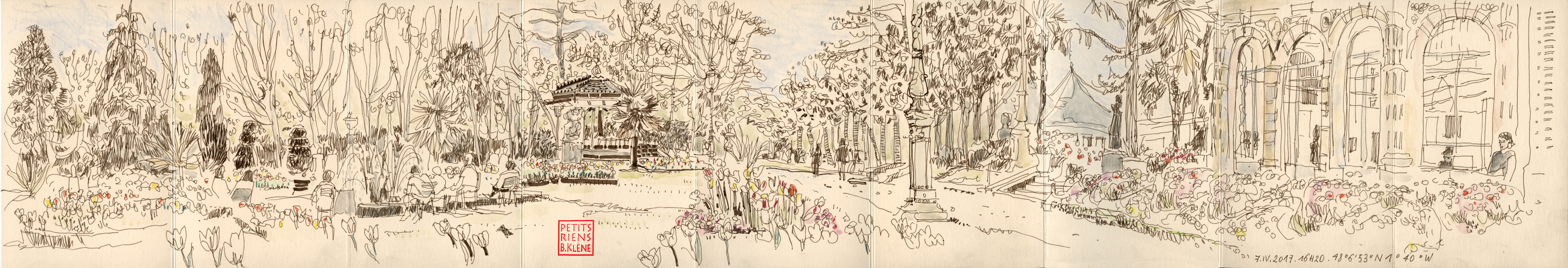 7.IV. 2017. 16h20. 48° 6′ 53 »N1°40 » W Publié le 08/04/2017 par benedicteklene Les londoniens vont-ils aimer mon premier bain de soleil au jardin du Thabor ?