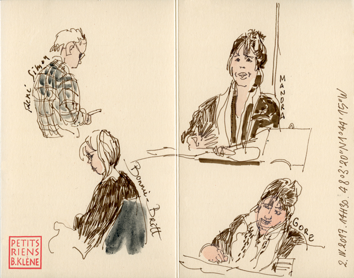 Avec le stand CROQ & MOB juste en face du stand des éditions Les Petits Riens, il y avait toujours les copains à dessiner…