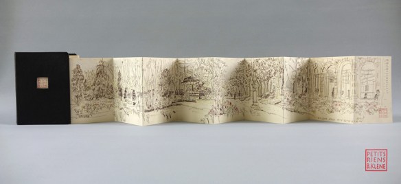 Leporello 10 volets. Dimensions : 14 X 90 cm en déplié