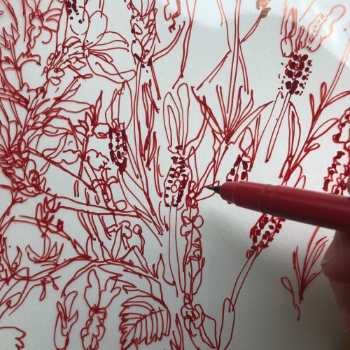 Continuer à lezardessiner au jardin, pour ne pas rater le spectacle des lavandes papillons en train d’éclore et de déployer leurs ailes.