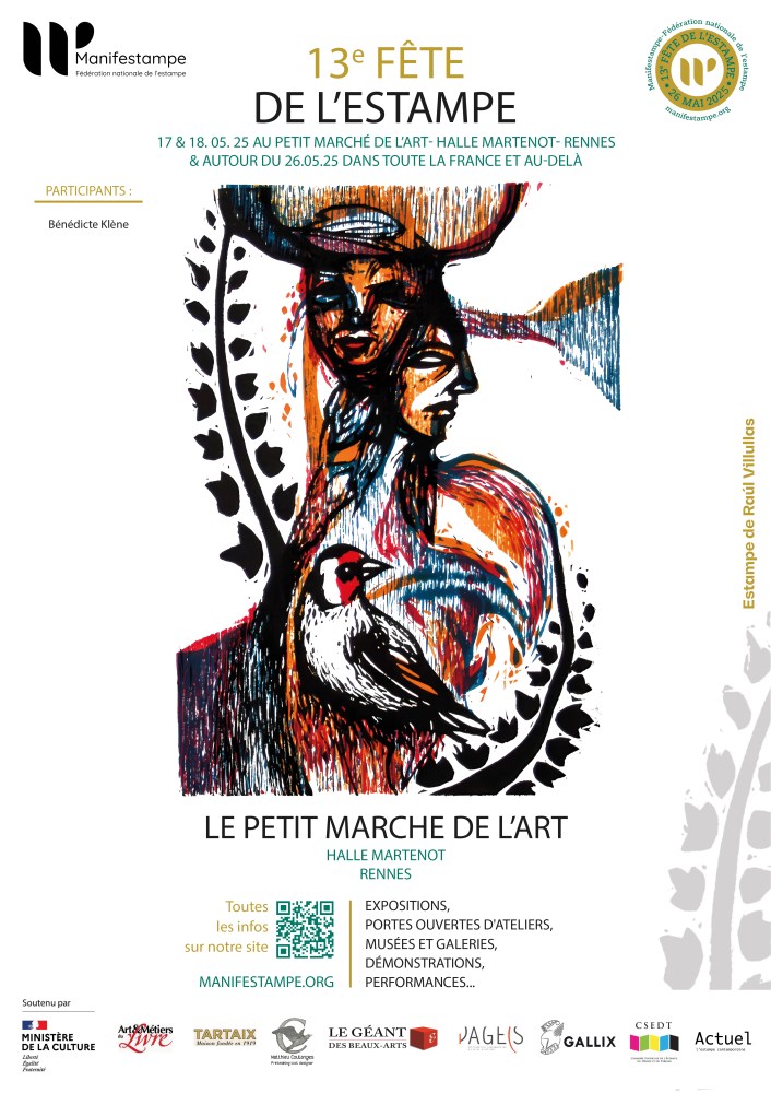 Je vous donne rendez-vous les 17 et 18 mai à Rennes, à la Halle Martenot pour le Petit Marché de l’art, qui coïncide cette année avec la 13 ème fête de l’estampe !