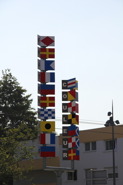 La sculpture déploie ses branches colorées pour diffuser deux messages que nous pouvons tous idéalement déchiffrer, quelque soit la diversité de nos origines, grâce aux pavillons/signaux du code maritime international.