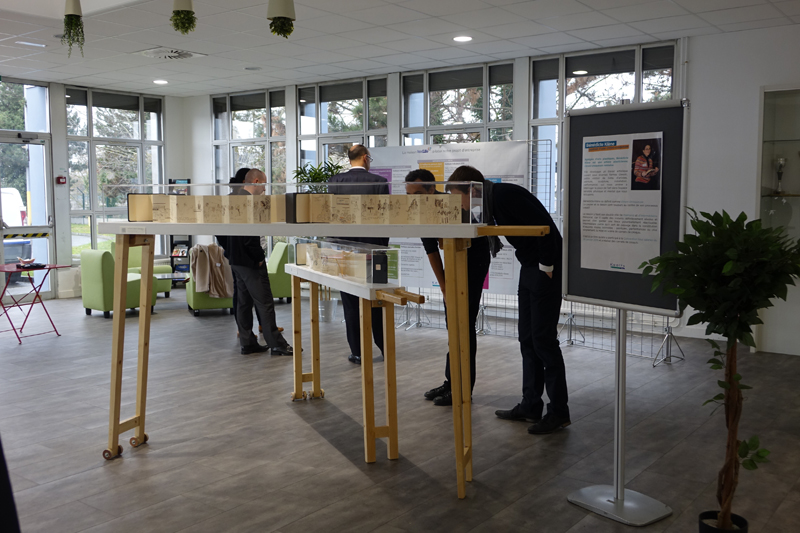 Du 1-18 mars 2016, la « Petite Galerie Passagère du Leporello » exposait à Rennes les cinq carnets dessinés au cours de la journée de convention d’entreprise dans la salle d’accueil et de repos du personnel.