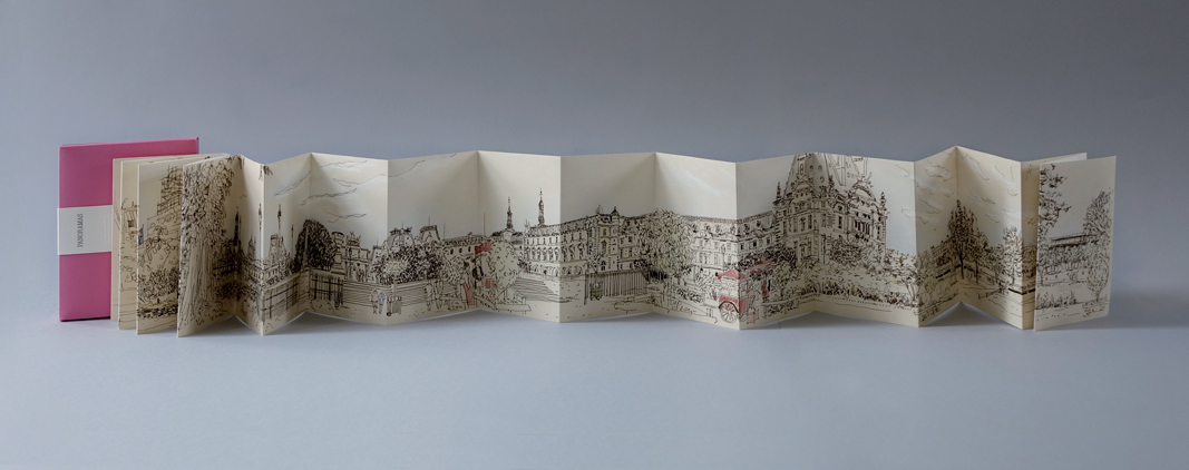Estampé à sec et signé par l’artiste sur le colophon, placé en premier volet du Leporello