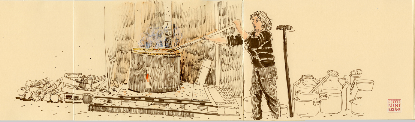 Voilà une des pièces de cuivre que l’on place au fond dans la pelle. Le ramaougeur doit la déplacer sans cesse pour éviter que le pommé en cours de cuisson n’accroche… Il y en a de toutes sortes, mais la plupart sont d’anciennes pièces de monnaie.