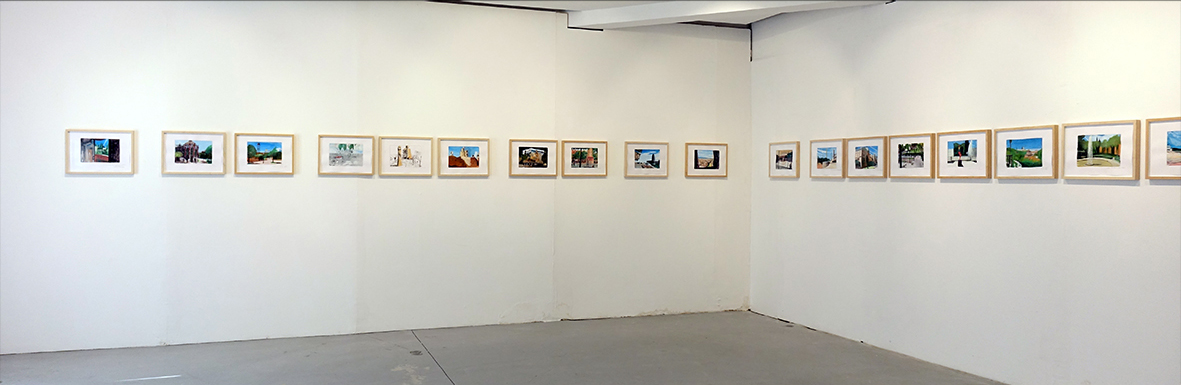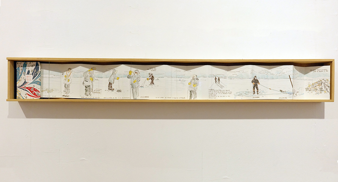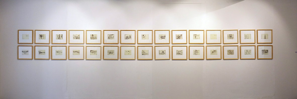 7 dessins sur papier crème, 16 volets encadrés, 17,6 x 7 x 140 cm