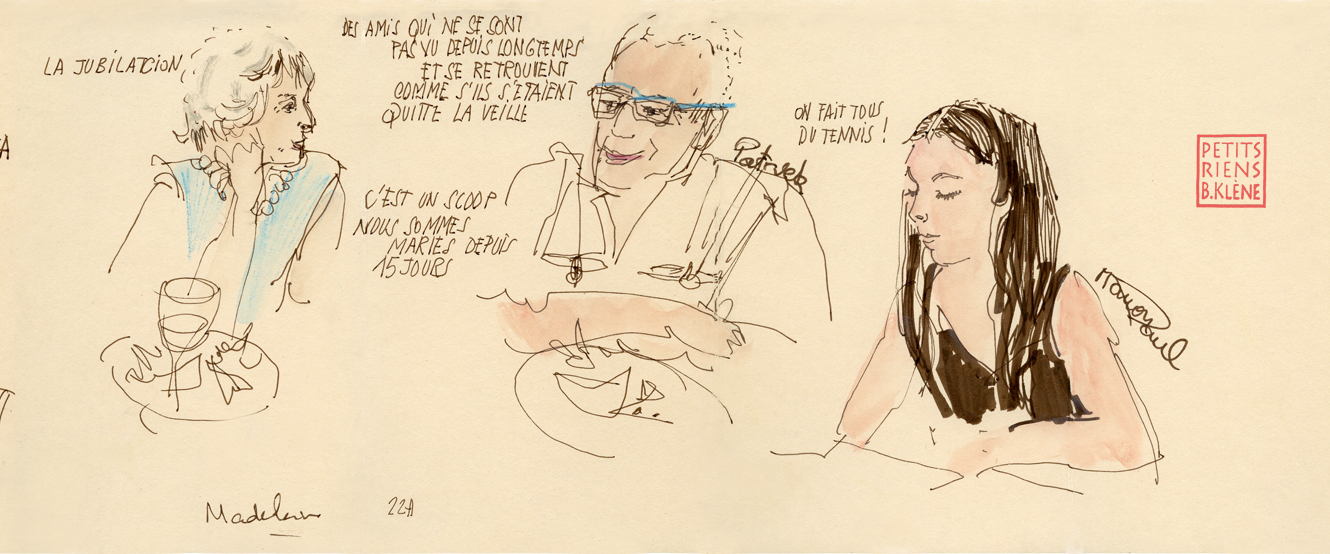 Samedi, c’était une belle soirée d’été sur l’île d’Aix pour fêter une nouvelle dizaine d’années. Quel plaisir de se retrouver ainsi, amis d’amis et amis de longue date, alors que nous sommes tous disséminés aux quatre coins du pays, voire du globe. Et pour moi, voilà encore une fois l’occasion de faire un tour de table, crayons en main, pour arrêter le temps !