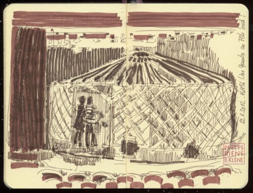 Publié dans 2012. Escale au Pôle Sud, Chroniques croquées | Mots-clefs : Bénédicte Klène, carnet de voyage, Centre culturel Chartres de Bretagne, Chartres de Bretagne, Chroniques croquées, Chronos, Compagnie Le Vent de Forges, dessin contemporain, Journal de bord, les petits riens, Pôle Sud, Résidence d'artiste, Résidence d'artiste au Pôle Sud, Reportage dessiné, théâtre d'argile manipulée, Vanités, yourte | Laisser une réponse