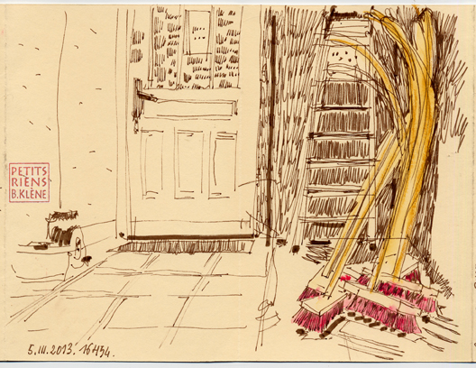 Des manches de balais qui ploient à l’avance sous la menace du travail à accomplir ? Troisième page du trente troisième carnet de Petits Riens
