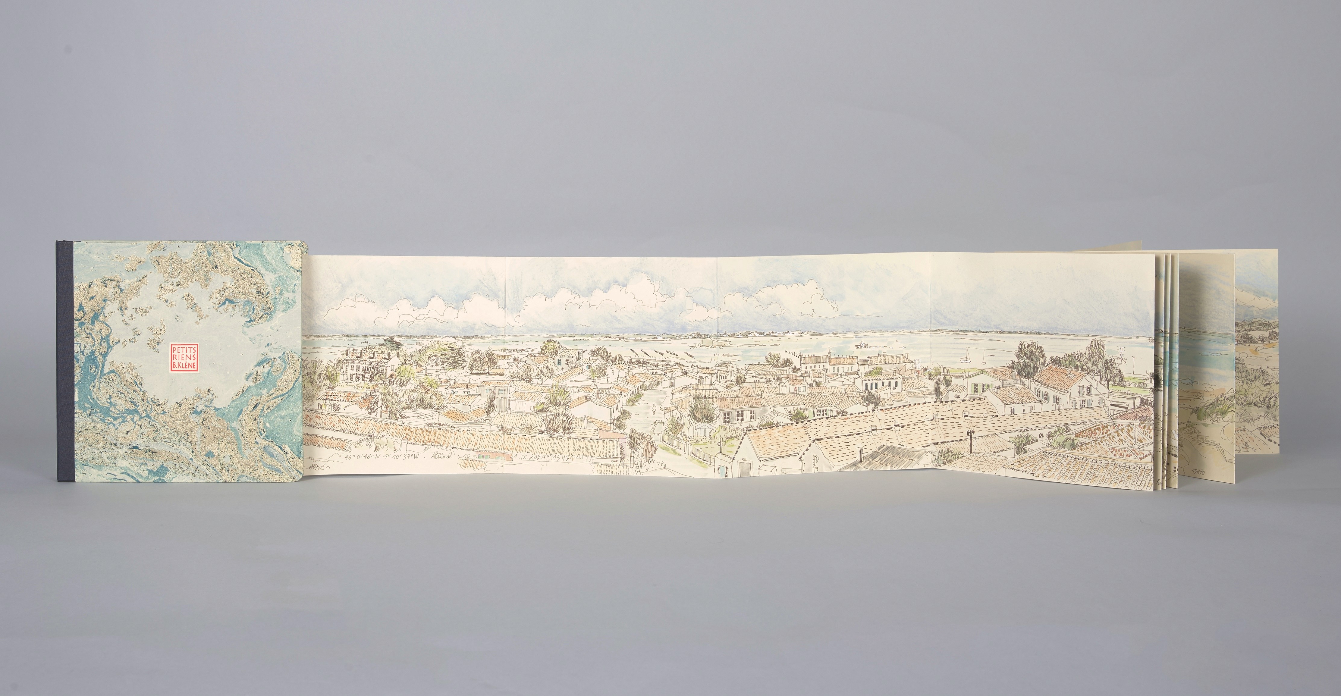 Au gré de mes pérégrinations graphiques, de la Bretagne à Vancouver, des îles atlantiques aux grandes métropoles, jusque dans la solitude et la blancheur de l’Arctique, je choisis, sélectionne et privilégie des points de vue qui procurent le sentiment d’embrasser le monde du regard, de le posséder, voire s’y perdre et s’y dissoudre (Série Panoramas des Petits Riens des Petits Bouts du Monde).